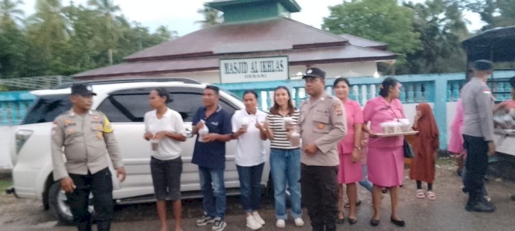 Tribratanewstts.com – Dalam suasana kedekatan dan kebersamaan di bulan suci Ramadhan 1447 H/2026 M, Polsek Kualin Polres Timor Tengah Selatan (TTS) bersama dengan Bhayangkari Ranting Polsek Kualin menggelar kegiatan pembagian takjil kepada masyarakat di depan Masjid Al-Ikhlas Oehani, Desa Kiufatu, Kecamatan Kualin , Kabupaten Timor Tengah Selatan, pada Jumat (13/3/2026) sore.