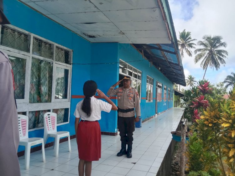 Tribratanewstts.com – Dalam rangka menanamkan rasa cinta tanah air, kedisiplinan, serta kepedulian terhadap keamanan dan keselamatan lingkungan, Kepolisian Sektor (Polsek) Amanatun Utara, Kabupaten Timor Tengah Selatan (TTS), melaksanakan kegiatan pembinaan melalui upacara bendera Merah Putih di halaman SD Inpres Ayotupas, Kecamatan Amanatun Utara, pada Senin, (20/04/26)